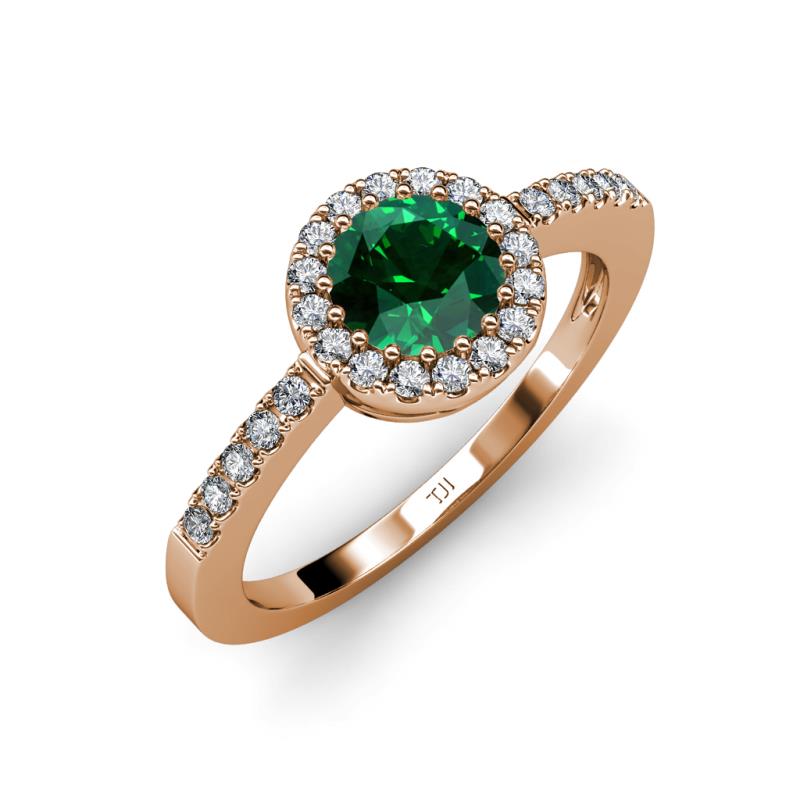 Emerald and Diamond Womens Halo Engagement Ring 1.41 ctw 18K Rose Gold More Details ...