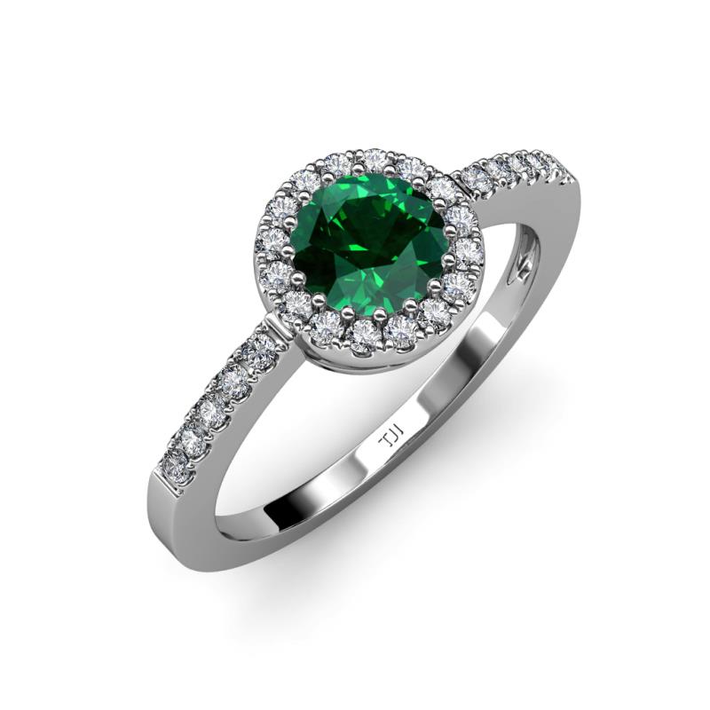 Emerald and Diamond Womens Halo Engagement Ring 1.41 ctw Platinum More Details ...