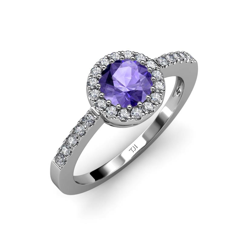 Iolite and Diamond Womens Halo Engagement Ring 1.41 ctw Platinum More Details ...