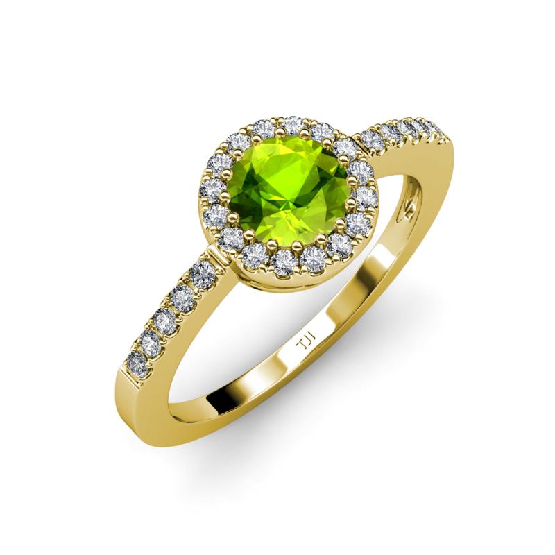Peridot and Diamond Womens Halo Engagement Ring 1.66 ctw 18K Yellow Gold More Details ...