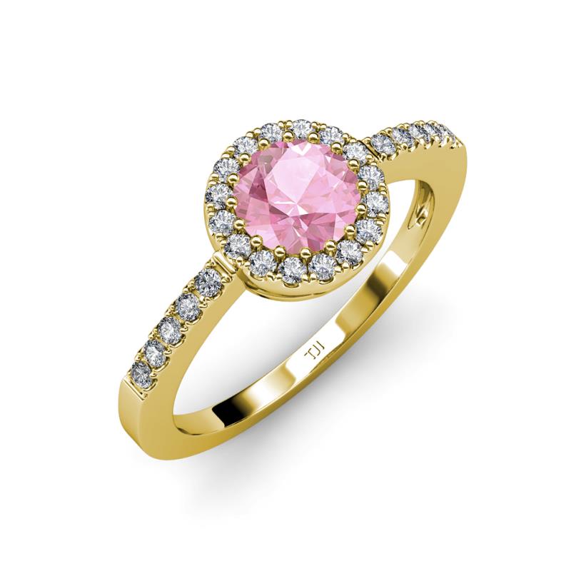 Pink Tourmaline and Diamond Womens Halo Engagement Ring 1.41 ctw 18K Yellow Gold More Details ...