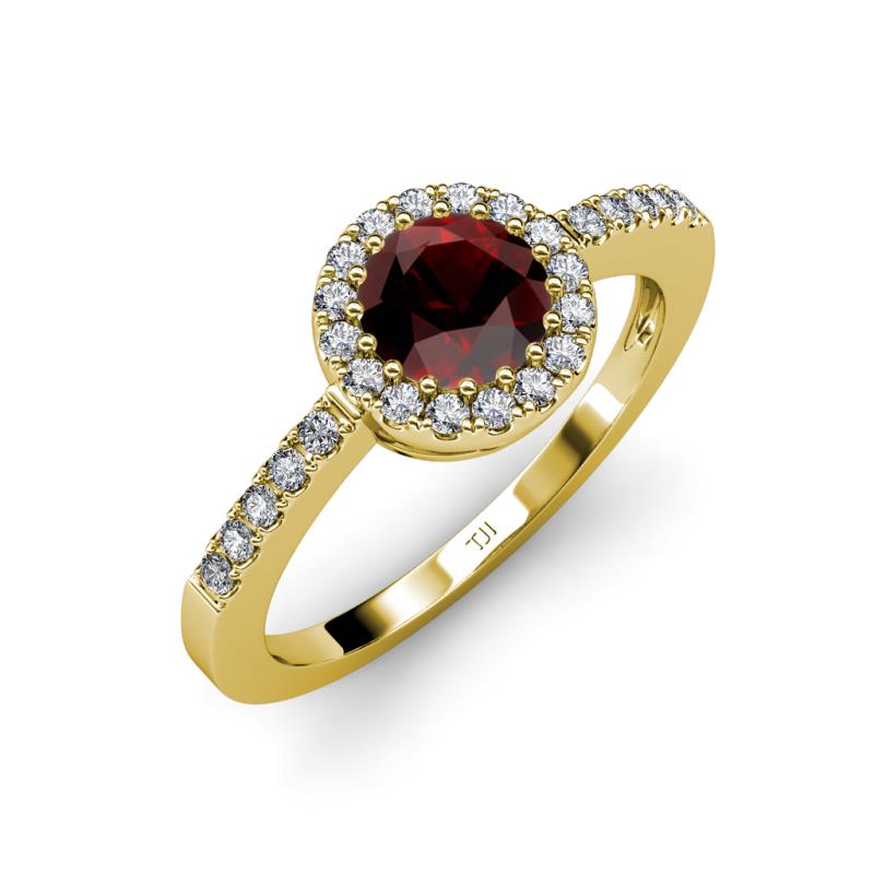Red Garnet and Diamond Womens Halo Engagement Ring 1.61 ctw 14K Yellow Gold More Details ...