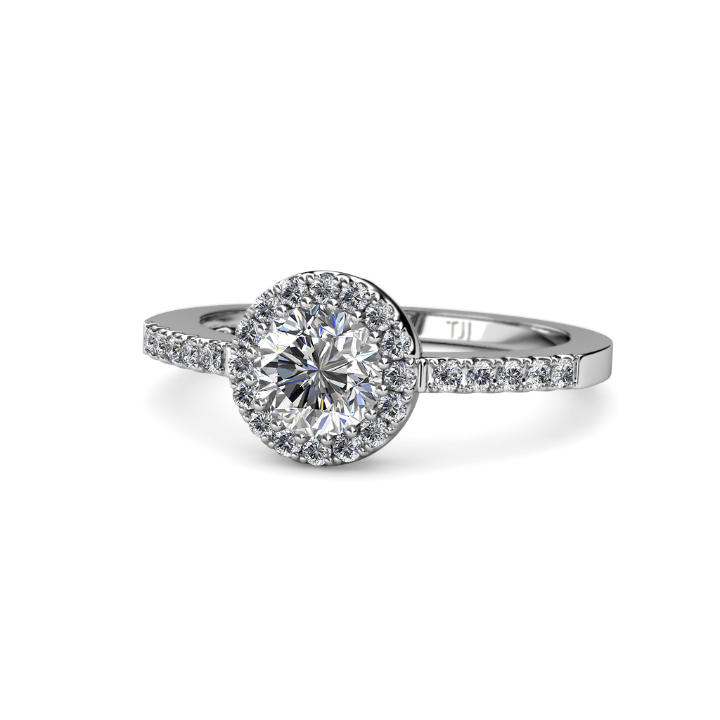 This glorious Engagement Ring,the most popular style of today features a halo of diamond with additional Diamonds on either sides providing an elegant touch to complete the Ring.