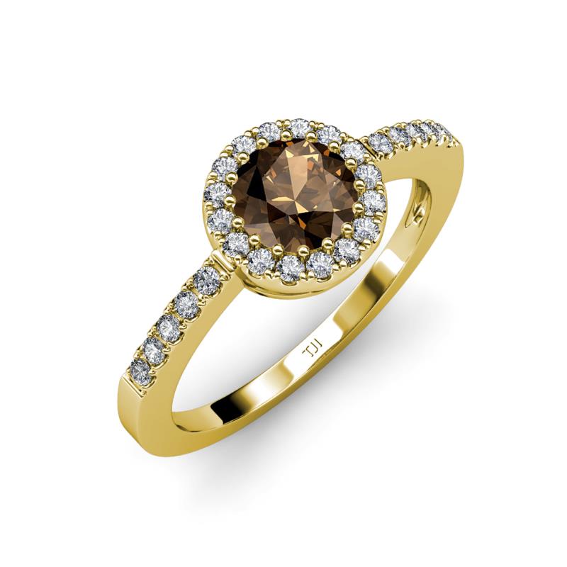 Smoky Quartz and Diamond Womens Halo Engagement Ring 1.45 ctw 18K Yellow Gold More Details ...