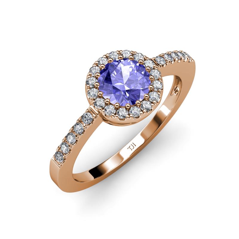Tanzanite and Diamond Womens Halo Engagement Ring 1.45 ctw 14K Rose Gold More Details ...