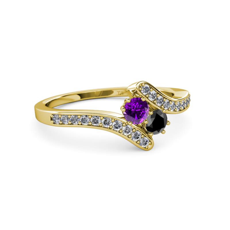Amethyst and Black Diamond 2 Stone with Side Diamonds Womens Bypass Engagement Ring 0.69 ctw 14K Yellow Gold More Details ...