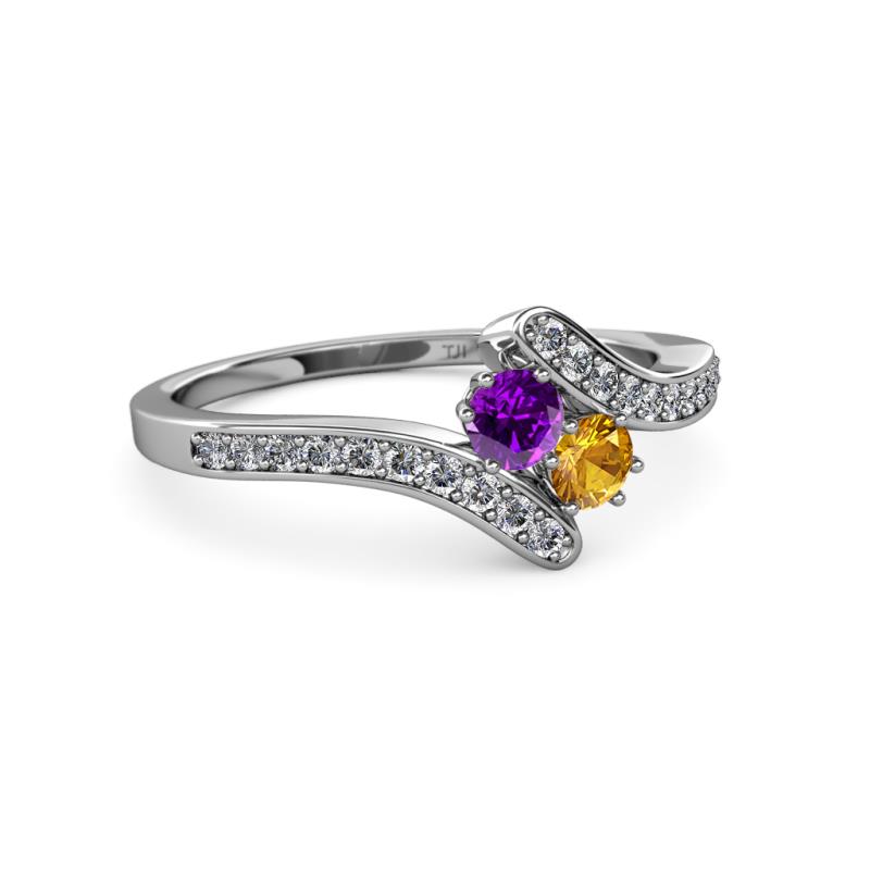 Amethyst and Citrine 2 Stone with Side Diamonds Womens Bypass Engagement Ring 0.66 ctw 14K White Gold More Details ...