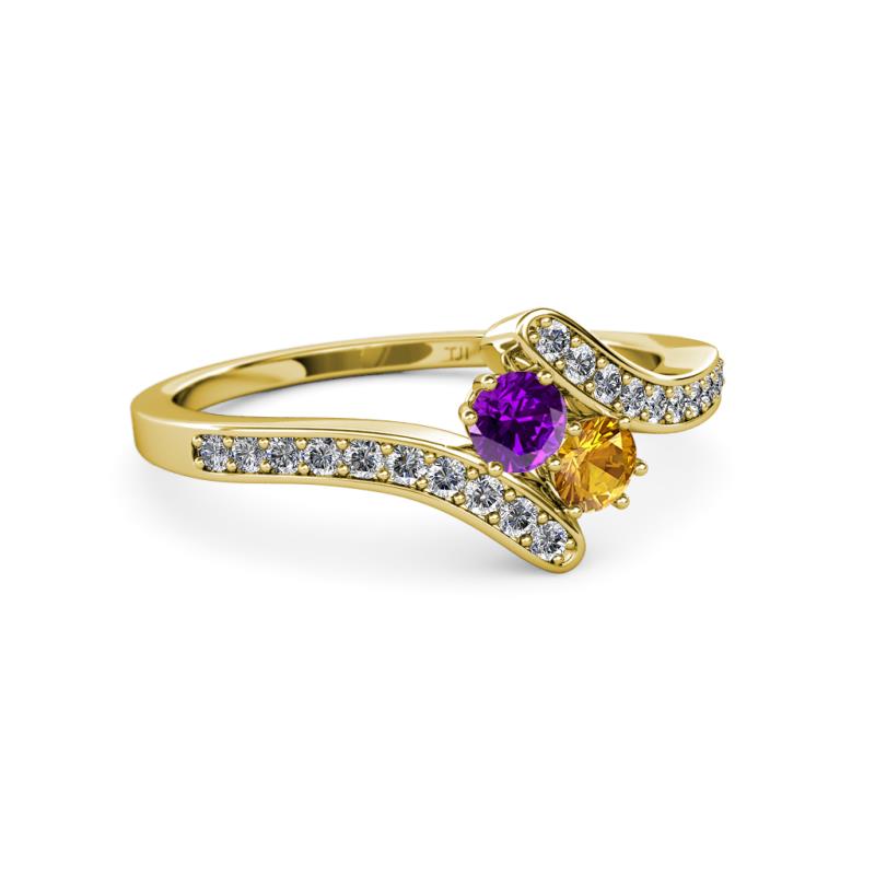 Amethyst and Citrine 2 Stone with Side Diamonds Womens Bypass Engagement Ring 0.66 ctw 14K Yellow Gold More Details ...