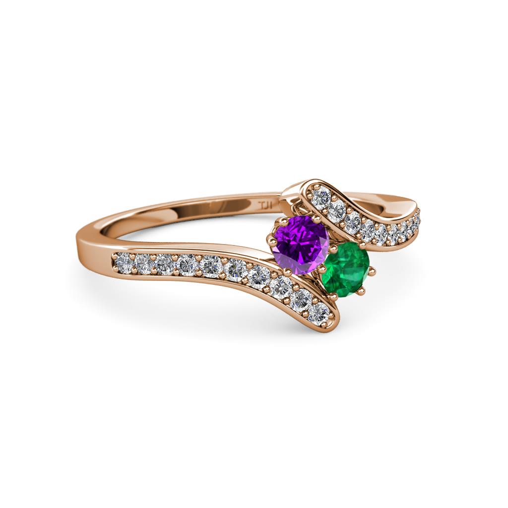 Amethyst and Emerald 2 Stone with Side Diamonds Womens Bypass Engagement Ring 0.66 ctw 14K Rose Gold More Details ...