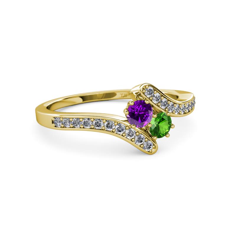 Amethyst and Green Garnet 2 Stone with Side Diamonds Womens Bypass Engagement Ring 0.71 ctw 14K Yellow Gold More Details ...