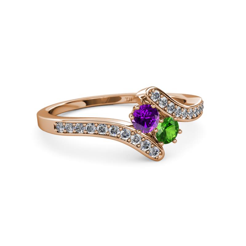 Amethyst and Green Garnet 2 Stone with Side Diamonds Womens Bypass Engagement Ring 0.71 ctw 14K Rose Gold More Details ...