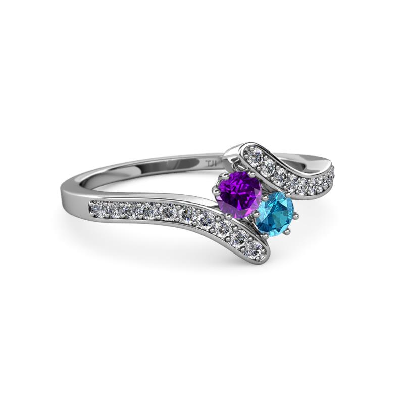 Amethyst and London Blue Topaz 2 Stone with Side Diamonds Womens Bypass Engagement Ring 0.70 ctw 14K White Gold More Details ...