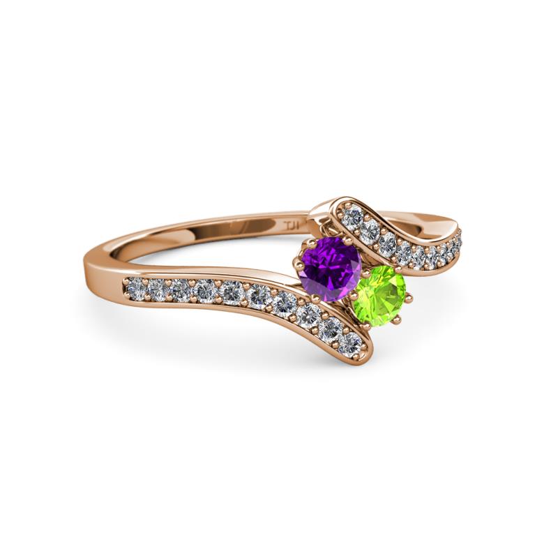Amethyst and Peridot 2 Stone with Side Diamonds Womens Bypass Engagement Ring 0.71 ctw 14K Rose Gold More Details ...