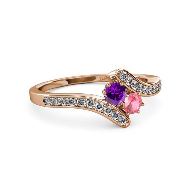 Amethyst and Pink Tourmaline 2 Stone with Side Diamonds Womens Bypass Engagement Ring 0.66 ctw 14K Rose Gold More Details ...
