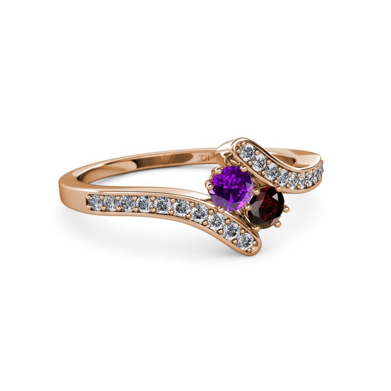 Amethyst and Red Garnet 2 Stone with Side Diamonds Womens Bypass Engagement Ring 0.71 ctw 14K Rose Gold More Details ...