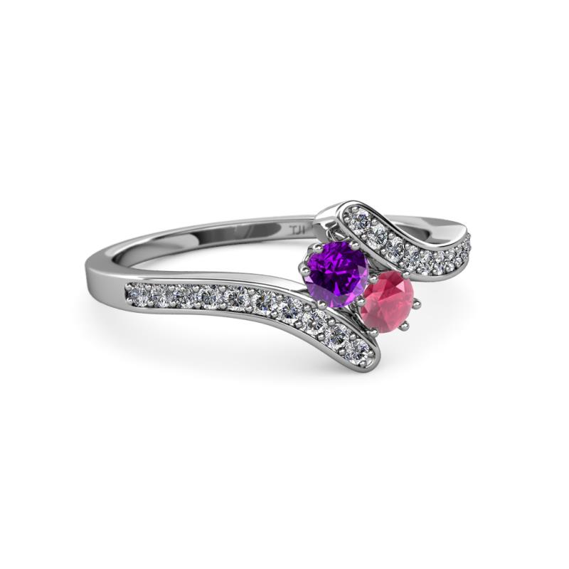 Amethyst and Rhodolite Garnet 2 Stone with Side Diamonds Womens Bypass Engagement Ring 0.71 ctw 14K White Gold More Details ...