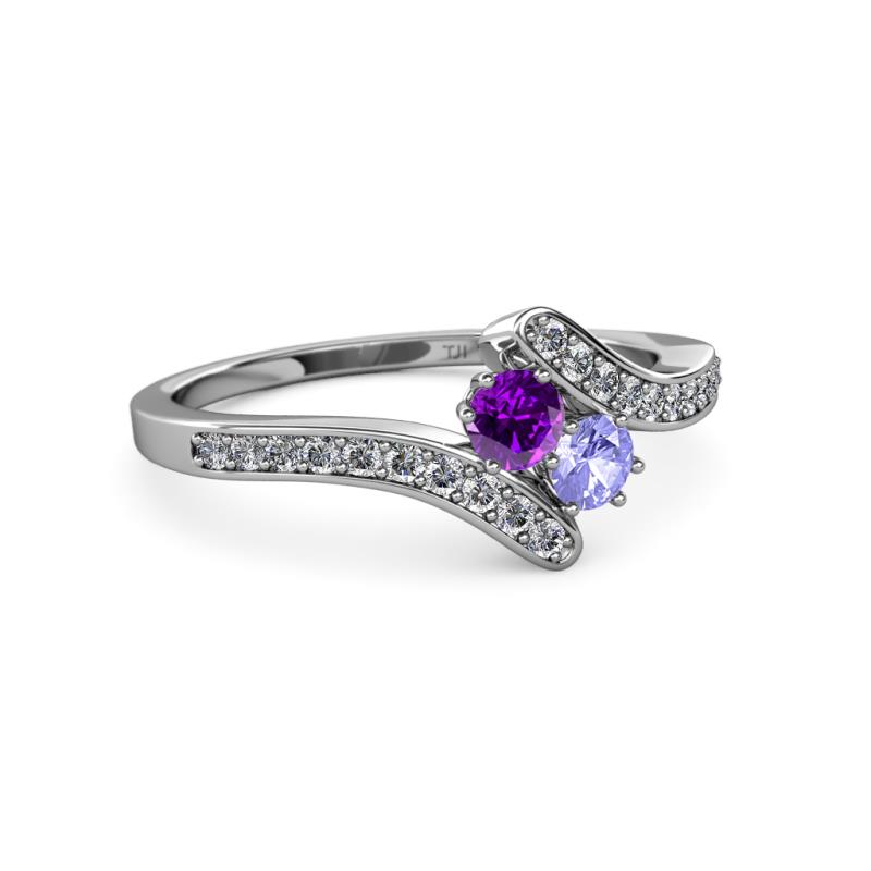 Amethyst and Tanzanite 2 Stone with Side Diamonds Womens Bypass Engagement Ring 0.68 ctw 14K White Gold More Details ...