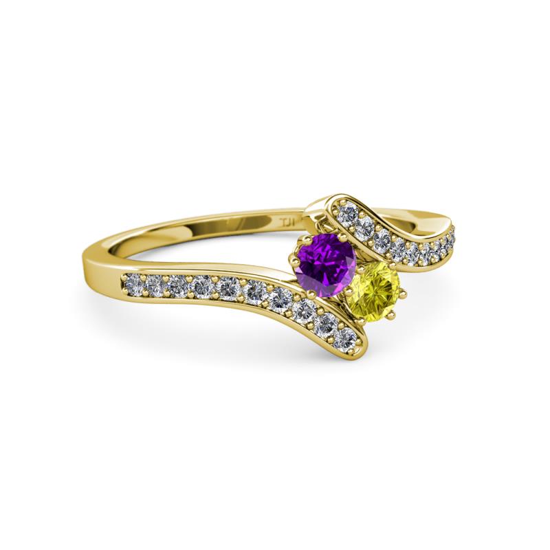Amethyst and Yellow Diamond 2 Stone with Side Diamonds Womens Bypass Engagement Ring 0.68 ctw 14K Yellow Gold More Details ...