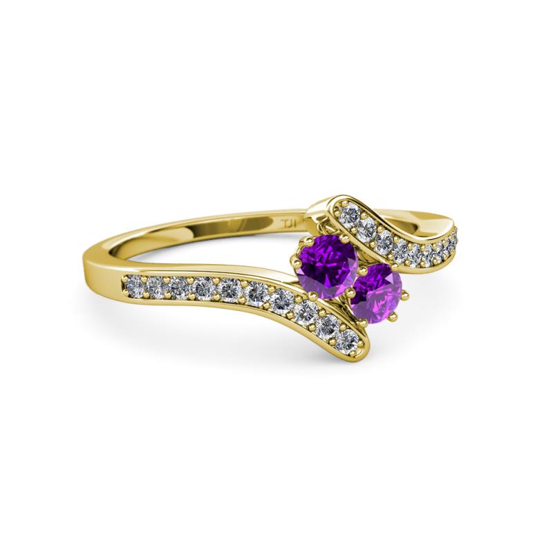 Amethyst 2 Stone with Side Diamonds Womens Bypass Engagement Ring 0.66 ctw 14K Yellow Gold More Details ...
