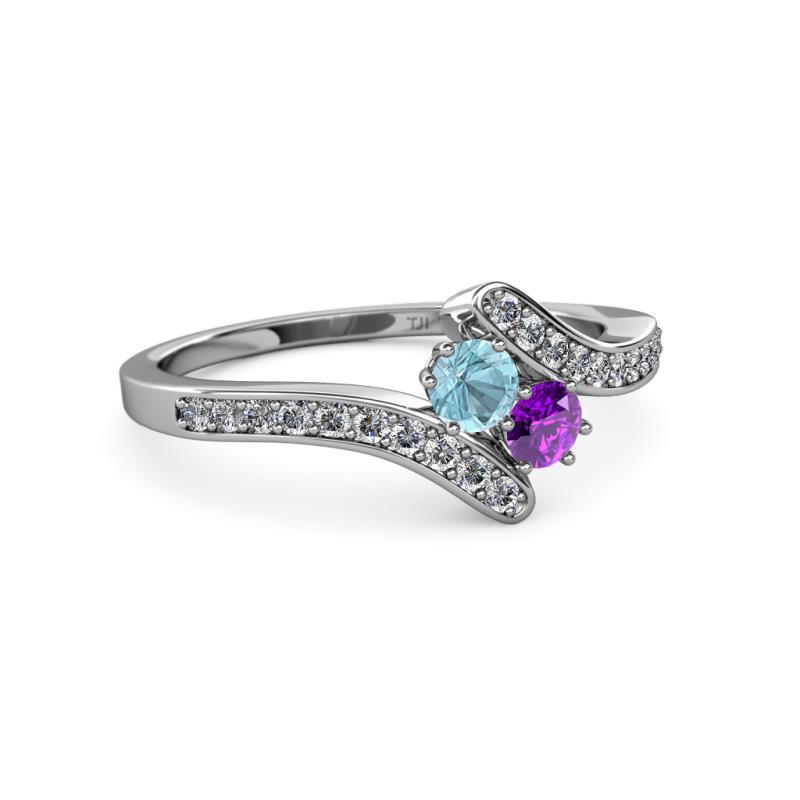 Aquamarine and Amethyst 2 Stone with Side Diamonds Womens Bypass Engagement Ring 0.66 ctw 14K White Gold More Details ...