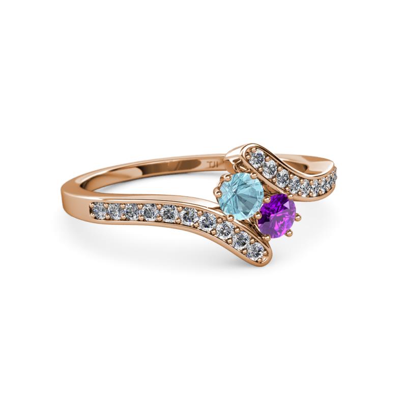 Aquamarine and Amethyst 2 Stone with Side Diamonds Womens Bypass Engagement Ring 0.66 ctw 14K Rose Gold More Details ...