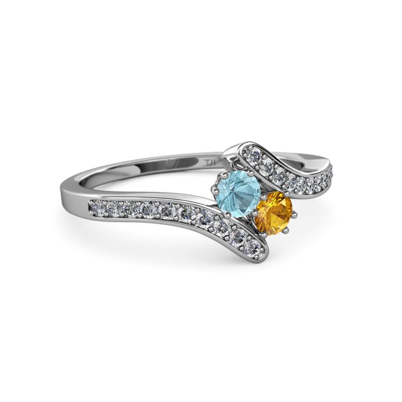 Aquamarine and Citrine 2 Stone with Side Diamonds Womens Bypass Engagement Ring 0.66 ctw 14K White Gold More Details ...