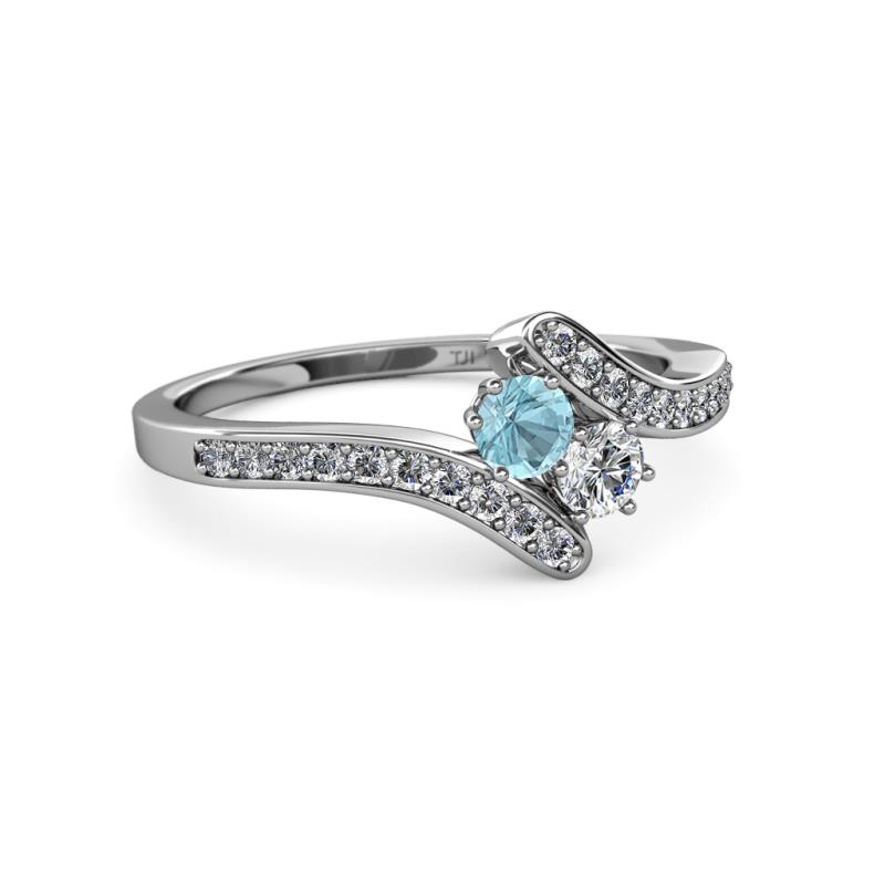 Aquamarine and Diamond 2 Stone with Side Diamonds Womens Bypass Engagement Ring 0.68 ctw 14K White Gold More Details ...