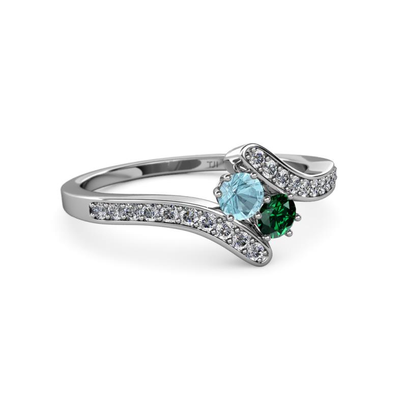 Aquamarine and Emerald 2 Stone with Side Diamonds Womens Bypass Engagement Ring 0.66 ctw 14K White Gold More Details ...