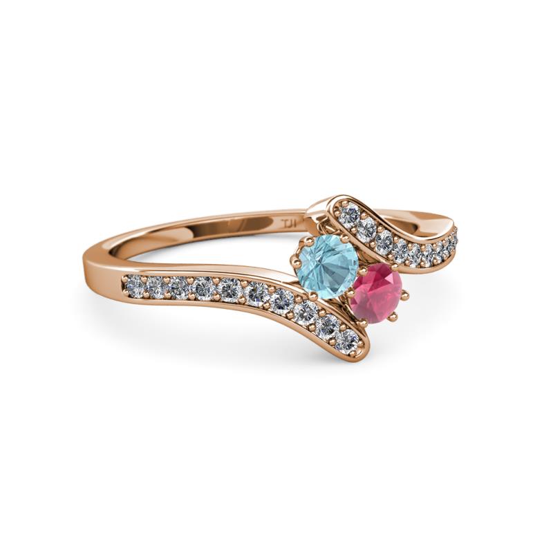 Aquamarine and Rhodolite Garnet 2 Stone with Side Diamonds Womens Bypass Engagement Ring 0.71 ctw 14K Rose Gold More Details ...