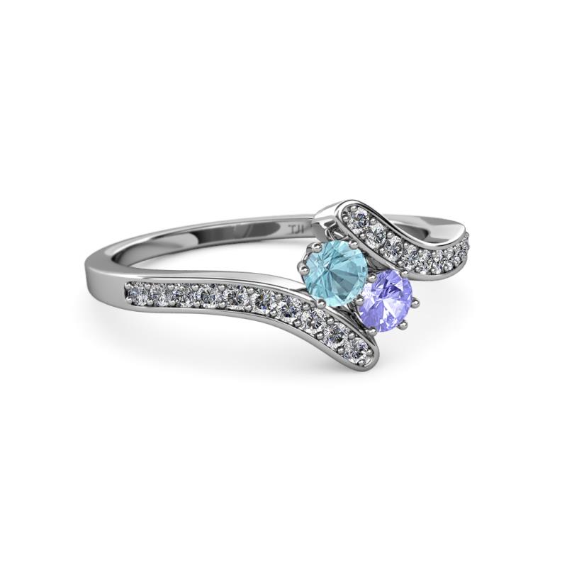 Aquamarine and Tanzanite 2 Stone with Side Diamonds Womens Bypass Engagement Ring 0.68 ctw 14K White Gold More Details ...