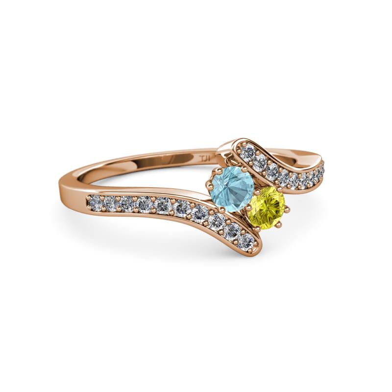 Aquamarine and Yellow Diamond 2 Stone with Side Diamonds Womens Bypass Engagement Ring 0.68 ctw 14K Rose Gold More Details ...