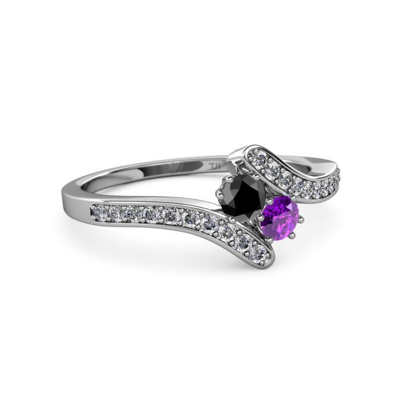 Black Diamond and Amethyst 2 Stone with Side Diamonds Womens Bypass Engagement Ring 0.69 ctw 14K White Gold More Details ...