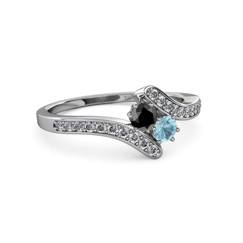Black Diamond and Aquamarine 2 Stone with Side Diamonds Womens Bypass Engagement Ring 0.69 ctw 14K White Gold More Details ...