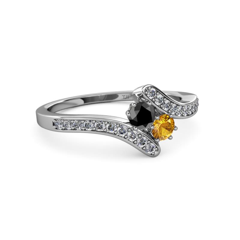 Black Diamond and Citrine 2 Stone with Side Diamonds Womens Bypass Engagement Ring 0.69 ctw 14K White Gold More Details ...