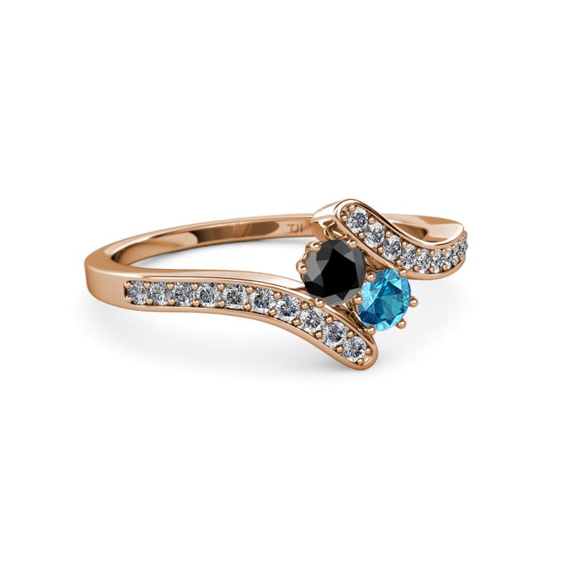 Black Diamond and London Blue Topaz 2 Stone with Side Diamonds Womens Bypass Engagement Ring 0.73 ctw 14K Rose Gold More Details ...