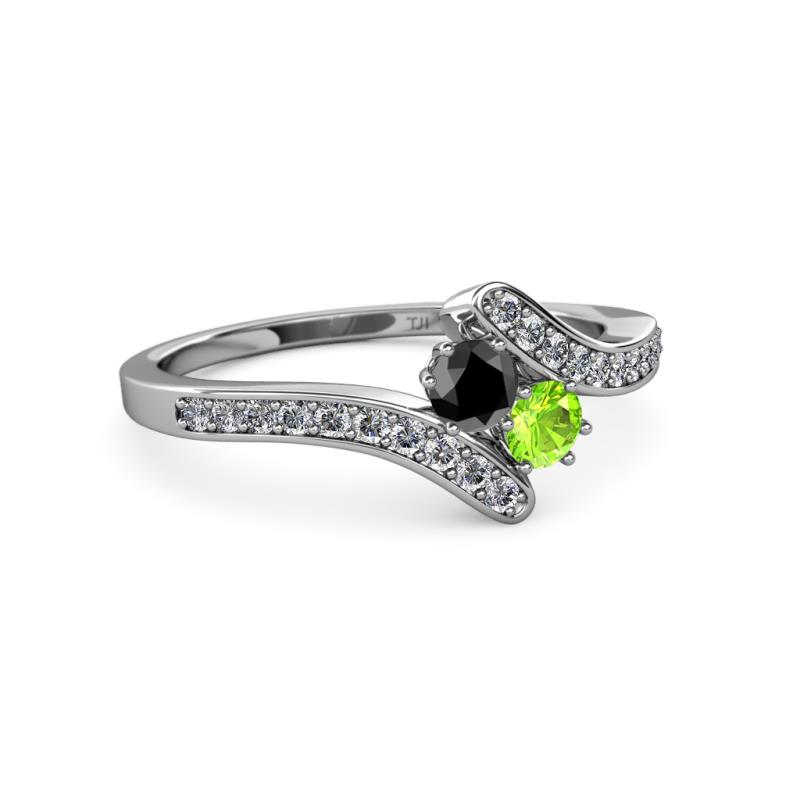 Black Diamond and Peridot 2 Stone with Side Diamonds Womens Bypass Engagement Ring 0.74 ctw 14K White Gold More Details ...