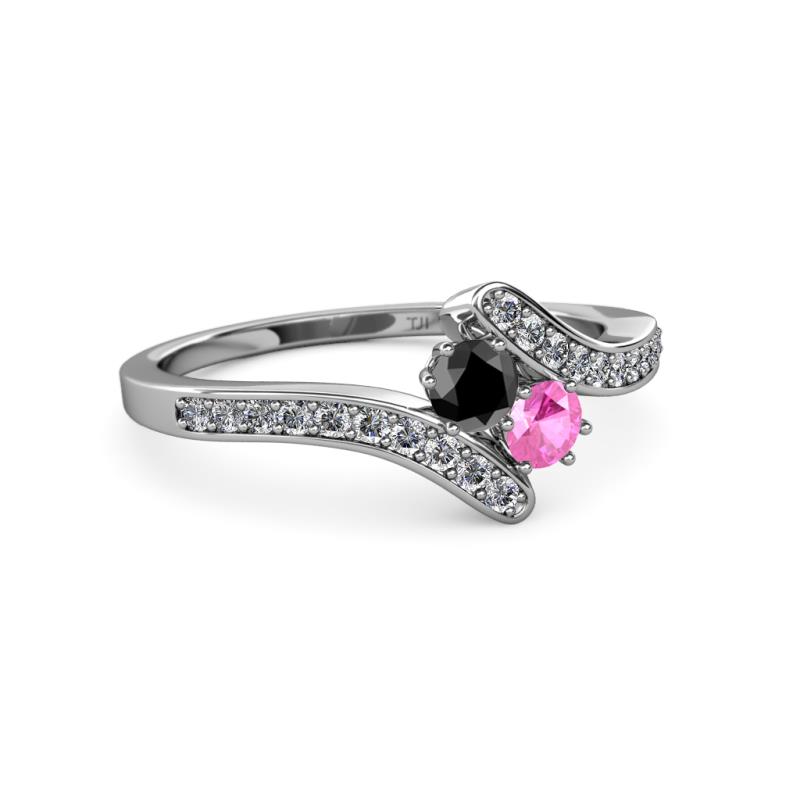 Black Diamond and Pink Sapphire 2 Stone with Side Diamonds Womens Bypass Engagement Ring 0.72 ctw 14K White Gold More Details ...