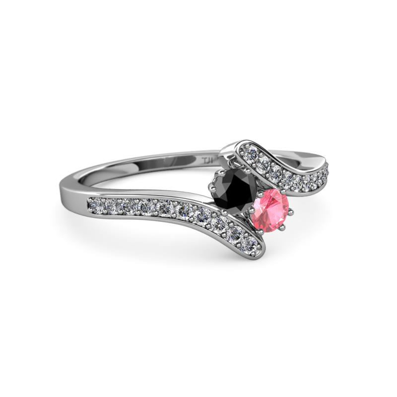 Black Diamond and Pink Tourmaline 2 Stone with Side Diamonds Womens Bypass Engagement Ring 0.69 ctw 14K White Gold More Details ...