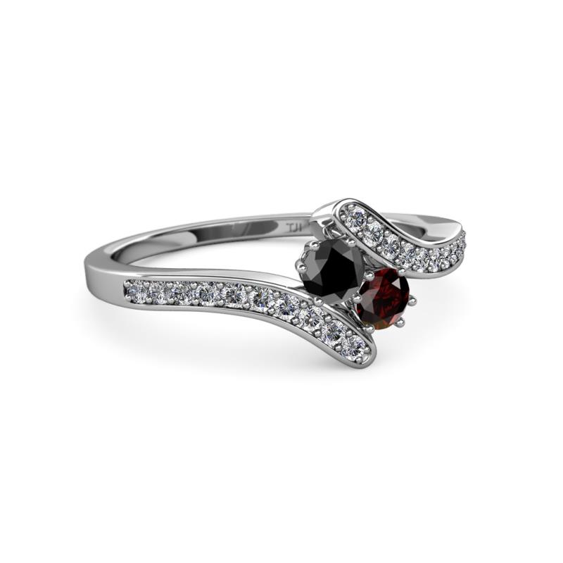 Black Diamond and Red Garnet 2 Stone with Side Diamonds Womens Bypass Engagement Ring 0.74 ctw 14K White Gold More Details ...
