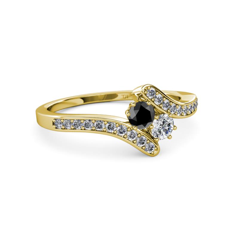 Black and White Diamond 2 Stone with Side Diamonds Womens Bypass Engagement Ring 0.71 ctw 14K Yellow Gold More Details ...