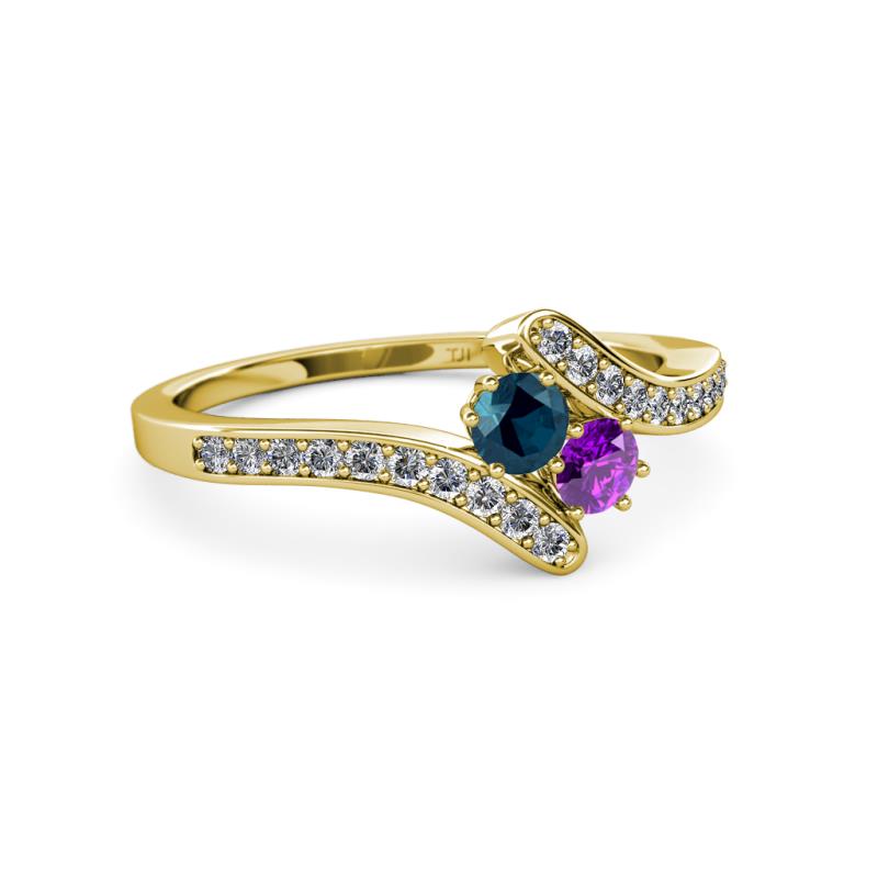 Blue Diamond and Amethyst 2 Stone with Side Diamonds Womens Bypass Engagement Ring 0.68 ctw 14K Yellow Gold More Details ...