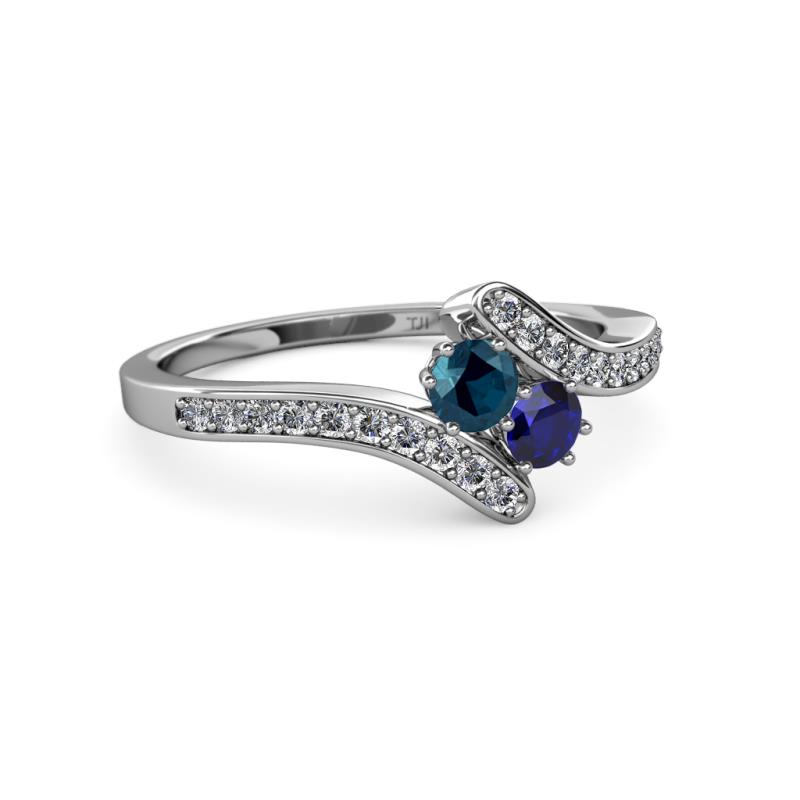 Blue Diamond and Blue Sapphire 2 Stone with Side Diamonds Womens Bypass Engagement Ring 0.71 ctw 14K White Gold More Details ...