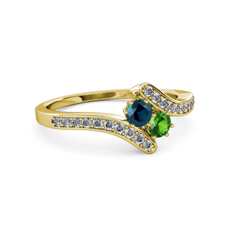 Blue Diamond and Green Garnet 2 Stone with Side Diamonds Womens Bypass Engagement Ring 0.73 ctw 14K Yellow Gold More Details ...