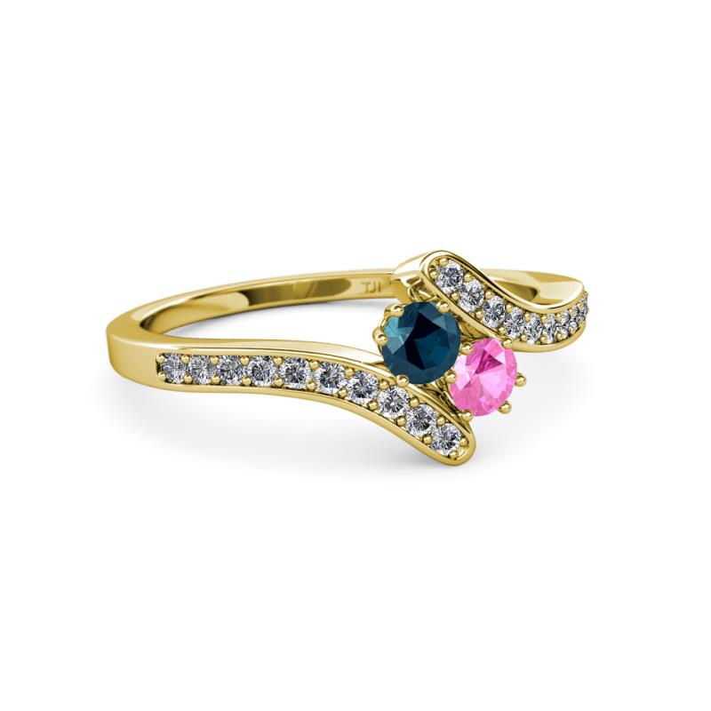 Blue Diamond and Pink Sapphire 2 Stone with Side Diamonds Womens Bypass Engagement Ring 0.71 ctw 14K Yellow Gold More Details ...