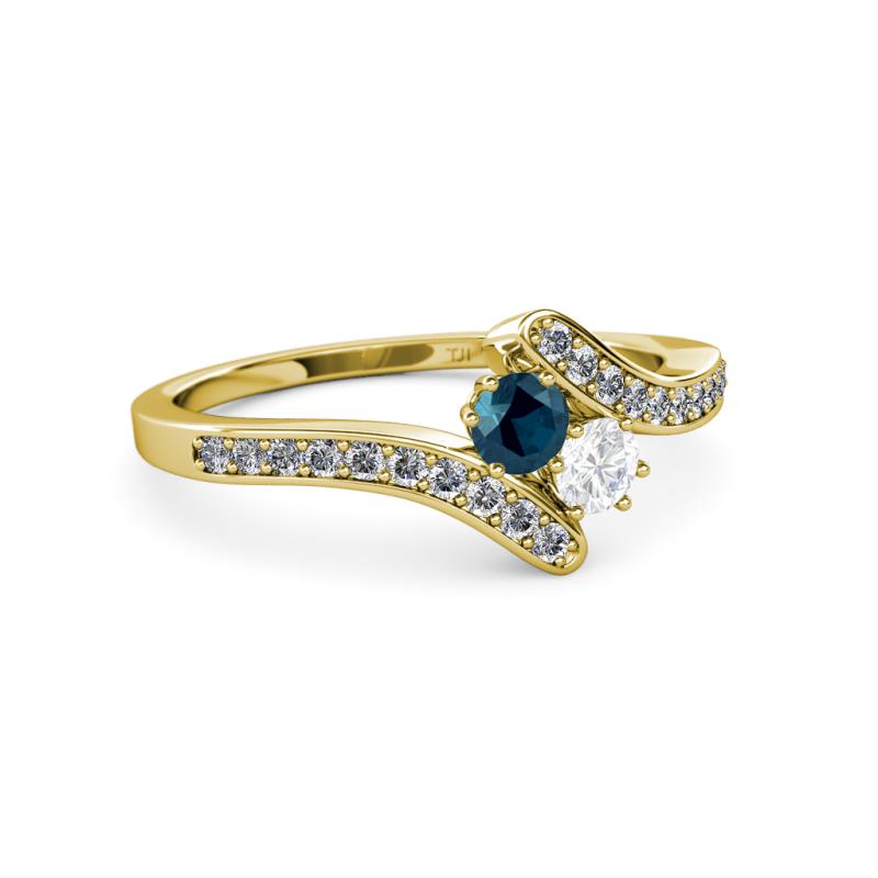 Blue Diamond and White Sapphire 2 Stone with Side Diamonds Womens Bypass Engagement Ring 0.71 ctw 14K Yellow Gold More Details ...