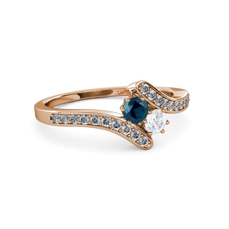 Blue Diamond and White Sapphire 2 Stone with Side Diamonds Womens Bypass Engagement Ring 0.71 ctw 14K Rose Gold More Details ...