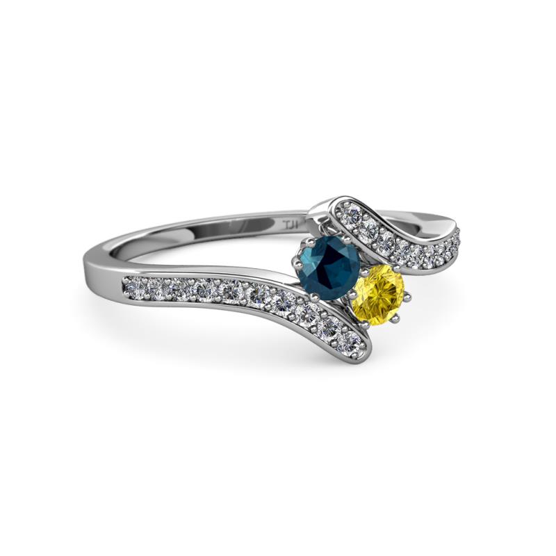 Blue Diamond and Yellow Sapphire 2 Stone with Side Diamonds Womens Bypass Engagement Ring 0.71 ctw 14K White Gold More Details ...