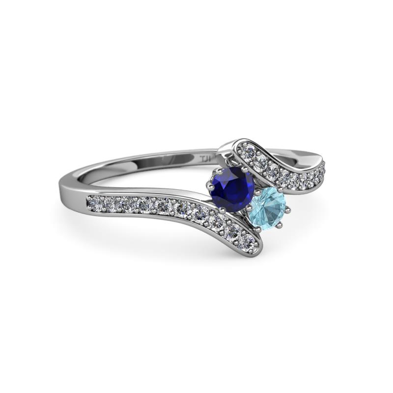 Blue Sapphire and Aquamarine 2 Stone with Side Diamonds Womens Bypass Engagement Ring 0.69 ctw 14K White Gold More Details ...