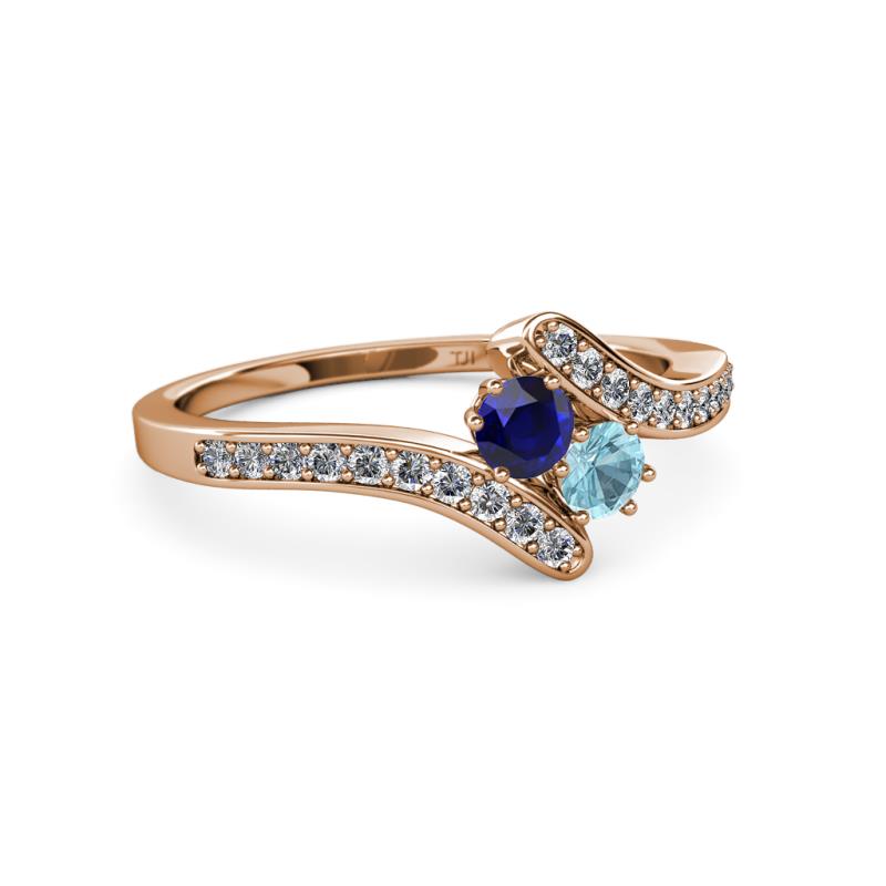Blue Sapphire and Aquamarine 2 Stone with Side Diamonds Womens Bypass Engagement Ring 0.69 ctw 14K Rose Gold More Details ...