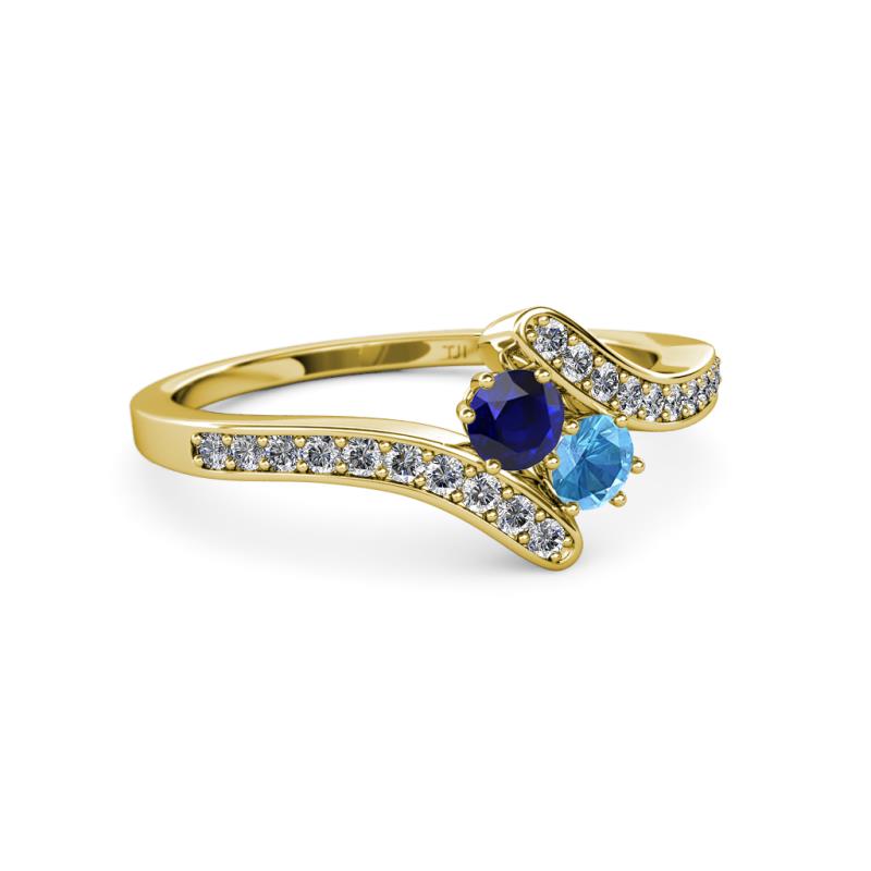Blue Sapphire and Blue Topaz 2 Stone with Side Diamonds Womens Bypass Engagement Ring 0.73 ctw 14K Yellow Gold More Details ...